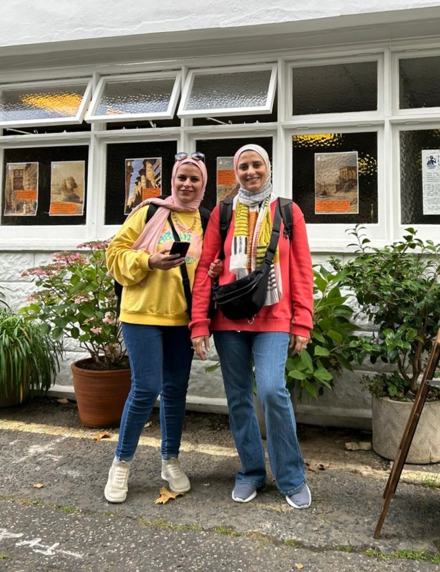With fellow Trust visitor Dr Hasnaa Abdellatif outside the offices of the Egypt Exploration Society